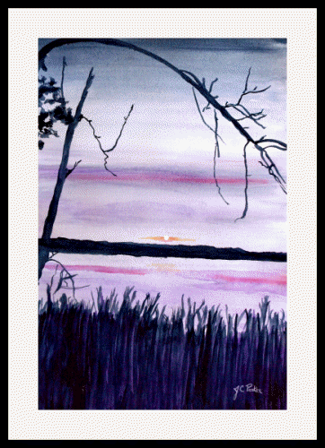 This summer I had the luck to be in exactly the right place to witness a spectacular moonrise over Round Lake. I don't ever remember seeing a full moon rise like this one! I painted this picture to capture the feeling of that special moment.