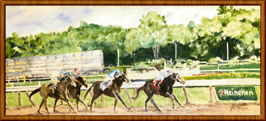 You can almost hear the raor of the crowd as the horses drive towards the finish line at Saratoga!